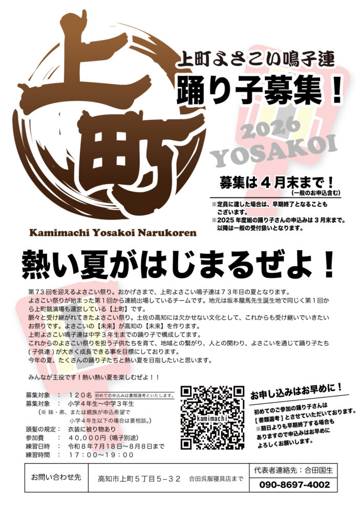 2026年度-踊り子募集 2026年3月8日 Filed under: 合田Kunio 2026年度-踊り子募集 たくさんの踊り子さんが参加してくれることをスタッフ一同お待ちしてます。 たくさんの踊り子さんが参加してくれることをスタッフ一同お待ちしてます。 申込書をダウンロード
